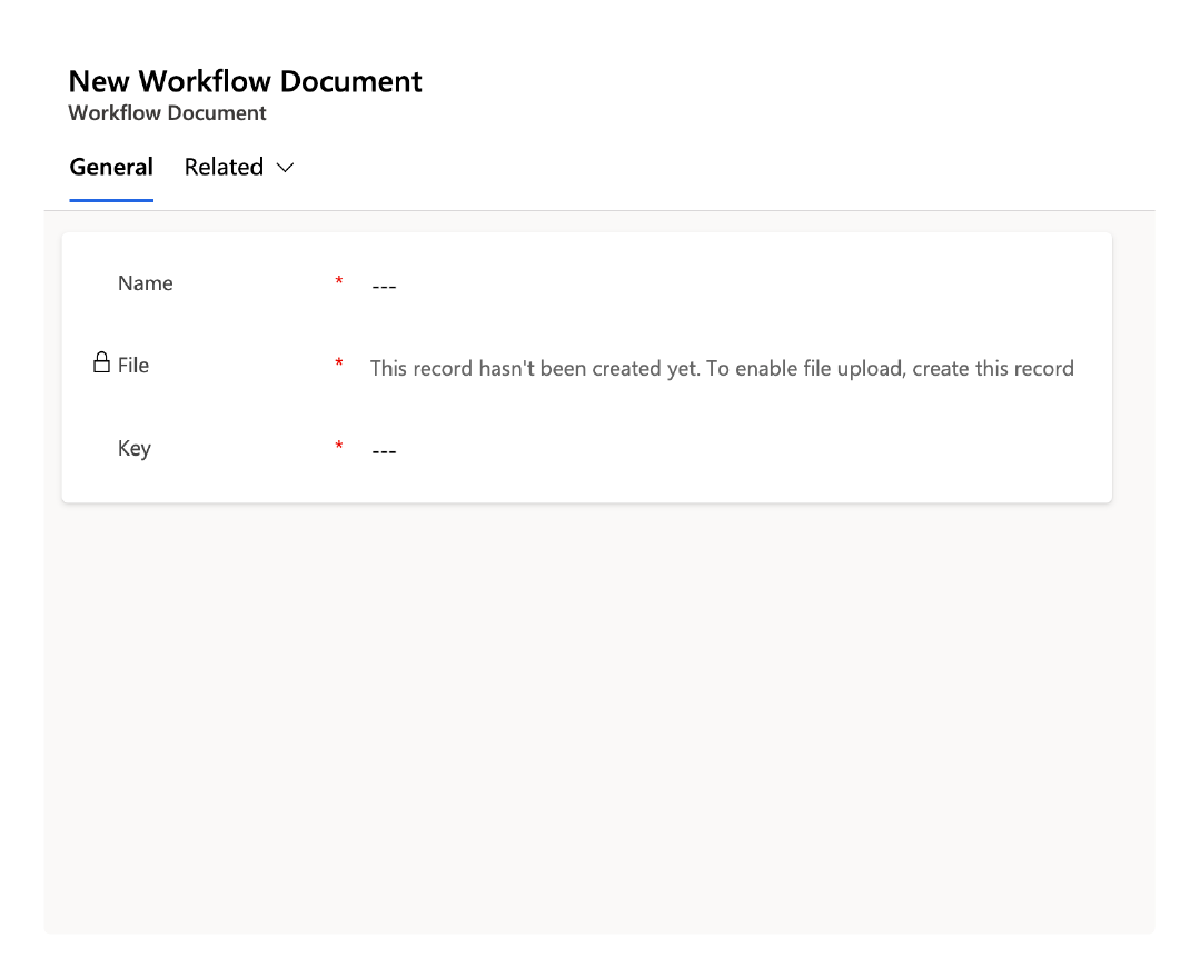 Add the following columns to the Workflow Document table (in addition to the standard columns that Dynamics creates automatically):