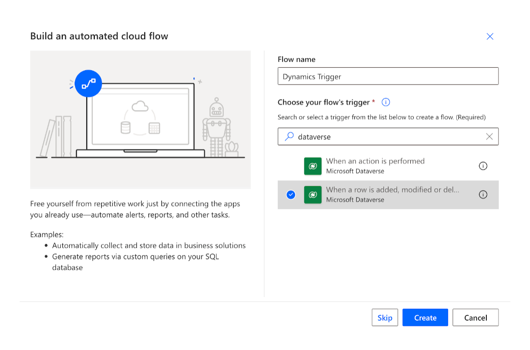 When a row is added, modified or deleted (Dataverse/Dynamics Connector)