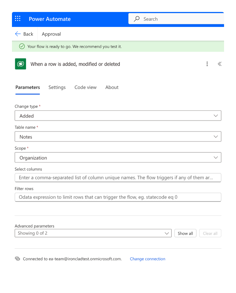 Create a Flow for the Approval Trigger: Start by creating a new automated Flow and selecting a trigger. In this example, we are building an automated cloud flow and selecting a Dataverse connector ‘When a row is added, modified or deleted.’