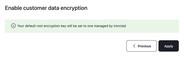 I want Ironclad to hold a key to encrypt my company's data.) and click apply.